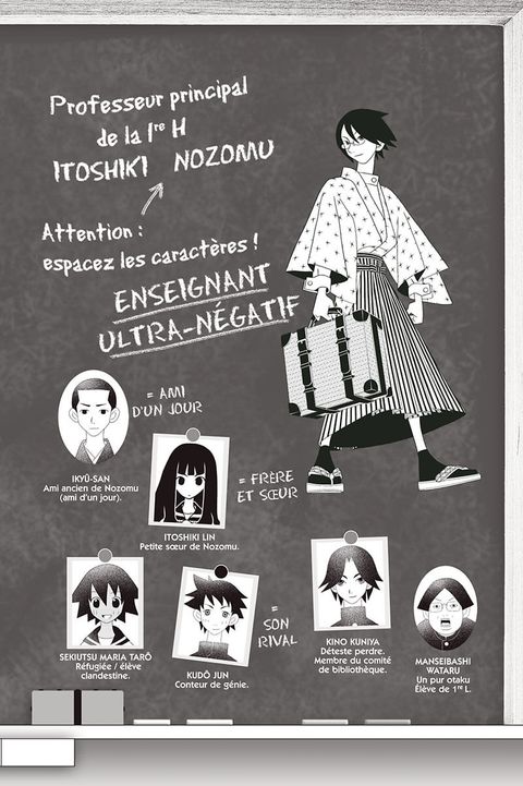La vie suit son cours pour Nozomu Itoshiki. Ses pérégrinations le mènent sur une île, au fin fond d’une jungle, et aux quatre coins du Japon. La classe de 1 re H lui en fait bien sûr voir des vertes et des pas mûres, comme d’habitude, au point de le rendre temporairement amnésique ! Vous découvrirez également l’aptitude extraordinaire de votre professeur préféré, lui permettant de rester en vie quel que soit le danger… Sayonara Monsieur Désespoir est l’une des comédies les plus drôles et les plus originales au Japon. « Tous ces tête-à-tête me désespèrent ! »