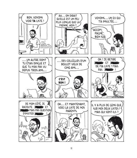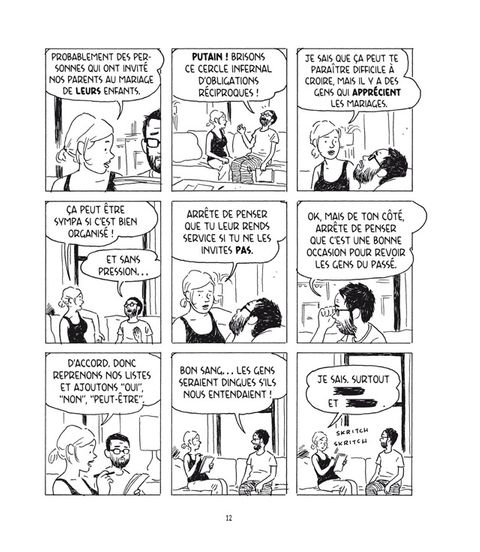 Sarah et Adrian décident de se marier. Jusque-là, rien d'anormal. Sauf que c'est le début des ennuis : il faut plaire à sa famille, à la belle famille, prendre des cours de danse, supporter des blagues potaches, éviter de s'étriper sur le nombre de petits fours, etc. Une série de vignettes amusantes dans laquelle Adrian Tomine capture avec talent ces petits riens qui font de la préparation d'un mariage un moment inoubliable.
