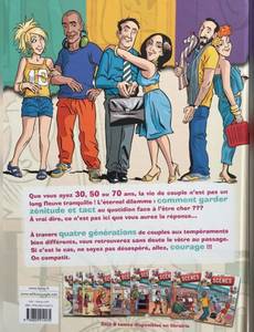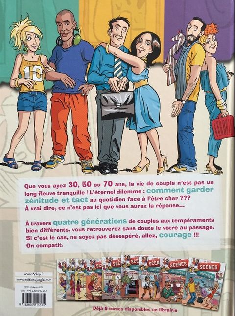 Vous êtes inquiet ? Vous trouvez que votre couple va mal ? Les disputes se font de plus en plus fréquentes… D’ailleurs, la dernière remonte à peine à une semaine ! Petit joueur ! Vous, vous ne connaissez pas les batailles d’égo de Marion et Cédric ! Vous ignorez tout des mésententes entre Liliane et José ! Les piques mutuelles d’Emma et Fabien ne font pas plus partie de votre monde que les discussions politiques animées entre Camille et Philippe… Vous n’avez même jamais eu vent des coups bas d’Huguette et Raymond ! Désolée de devoir vous dire ça, mais à côté de tout ce petit monde, vos bisbilles sont aussi douces et écœurantes qu’une barbe-à-papa à la guimauve ! Vous ne me croyez pas ? Ouvrez donc cette BD consacrée à leurs aventures, et vous verrez ! Mais ne vous attendez pas à n’y voir que des disputes… Vous y trouverez aussi beaucoup de rires. De la complicité à foison. Une tendresse à toute épreuve. Bref... Des sentiments profonds qui se devinent même derrière les noms d’oiseaux. Alors, si votre prochaine fâcherie avec votre partenaire vous fait douter, repensez à ces Scènes de Ménages, et souvenez-vous que l’arbre de la dispute cache souvent la forêt de l’amour…