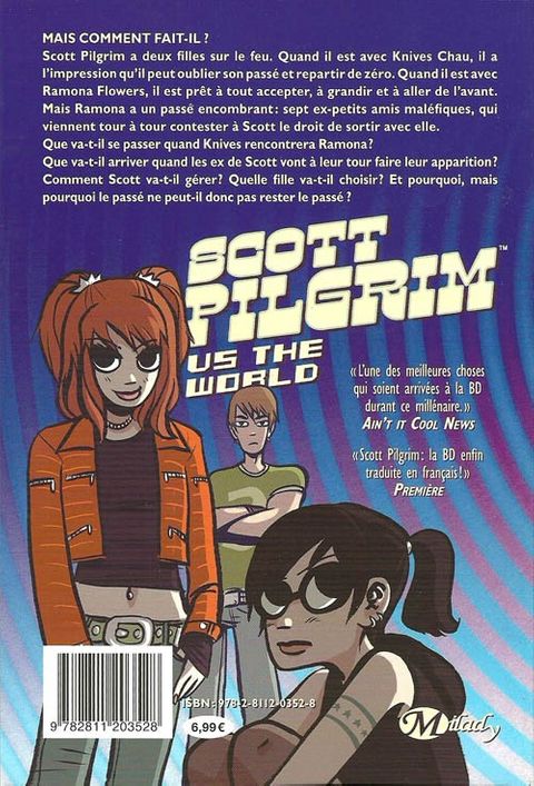 Scott Pilgrim a deux filles sur le feu. Quand il est avec KnivesChau, il a l'impression qu'il peut oublier son passé et repartir à zéro. Quand il est avec Ramona Flowers, il est prêt à tout accepter, à grandir et à aller de l'avant. Mais Ramona a un passé encombrant : sept ex-petits amis maléfiques, qui viennent tour à tour contester à Scott le droit de sortir avec elle. Que va-t-il se passer quand Knives rencontrera Ramona ? Que va-t-il arriver quand les ex de Scott vont à leur tour faire leur apparition ? Comment Scott va-t-il gérer ? Quelle fille va-t-il choisir ? Et pourquoi, mais pourquoi le passé ne peut-il pas rester le passé ?