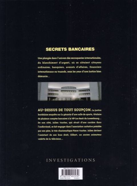 Une plongée dans l'univers des escroqueries internationales, du blanchiment d'argent, où se côtoient citoyens ordinaires, banquiers, avocats d'affaires, financiers internationaux ou truands, sous les yeux d'une Justice bien démunie... Au-dessus de tout soupçon. La justice bordelaise enquête sur la gérante d'une salle de sports, titulaire de plusieurs comptes bancaires à la VIP Lux Bank du Luxembourg... De son côté, Julien Vautier, qui rêvait d'une carrière dans l'audiovisuel, se fait engager dans l'association caritative présidée par son père, le très charismatique Pierre Vautier. Julien devient l'assistant de son bras droit, Gilbert, un ancien animateur vedette de la télévision...