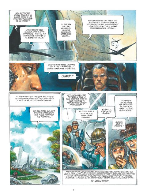 Futur, apogée de l'ère galactique. L'Humanité connaît enfin la prospérité sur les systèmes coloniaux après sa quasi extinction il y a 3000 ans sur Terre actuellement ravagée et inhabitée. Les guides immortels ont en effet abolis les guerres et les conflits incessants grâce à l'acceptation profonde de la nature humaine. (...) Voir le commentaire