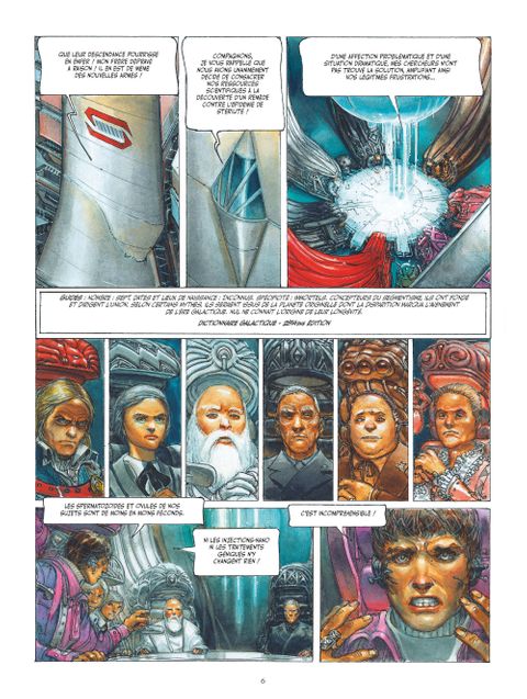 Un magistral space opera philosophique. XXVIIIe siècle de l'ère galactique. Afin d'éradiquer des conflits, les humains ont été regroupés par types de personnalités sur des planètes monocolores vouées à des fonctions uniques : la spiritualité, l'échange, la jouissance, la guerre, le travail, l'ordre et la créativité. Mais dans cet univers si parfait, une incompréhensible épidémie de stérilité se propage, condamnant inexorablement l'humanité dans un futur proche. Dans une salle d'audience, l'indolent Loth Lungren et la sensuelle Jezréel se croisent pour être jugés. L'une pour avoir refusé de s'adonner au sexe débridé et à la drogue, bien qu'affectée au monde de la jouissance, l'autre pour ne pas avoir rejoint sa garnison. Lourdement condamnés à l'issue d'un procès kafkaïen, ils tenteront d'échapper à cette galaxie névrotique...Retrouvez, pour la première fois en intégrale, l'oeuvre la plus personnelle de Richard Malka. Un conte spatial et philosophique illustré par le maître en la matière : Gimenez, le dessinateur mythique de La Caste des Méta-Barons.