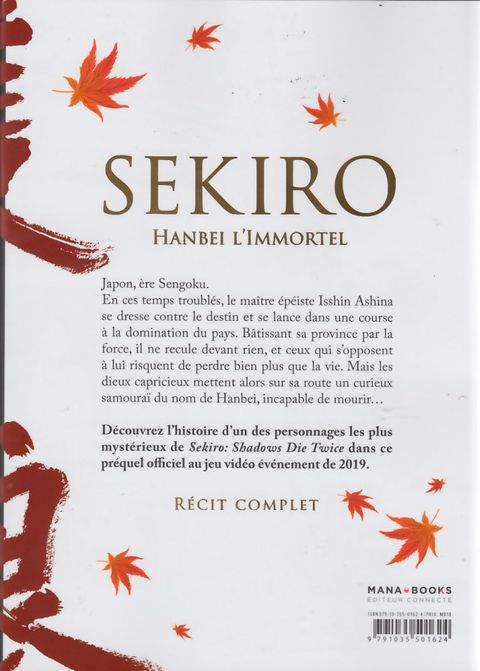 Japon, ère Sengoku. En ces temps troublés, le maître épéiste Isshin Ashina se dresse contre le destin et se lance dans une course à la domination du pays. Bâtissant sa province par la force, il ne recule devant rien, et ceux qui s'opposent à lui risquent de perdre bien plus que la vie. Mais les dieux capricieux mettent alors sur sa route un curieux samouraï du nom de Hanbei, incapable de mourir... Découvrez l'histoire d'un des personnages les plus mystérieux de Sekiro: Shadows Die Twice dans ce préquel officiel au jeu vidéo événement de 2019.