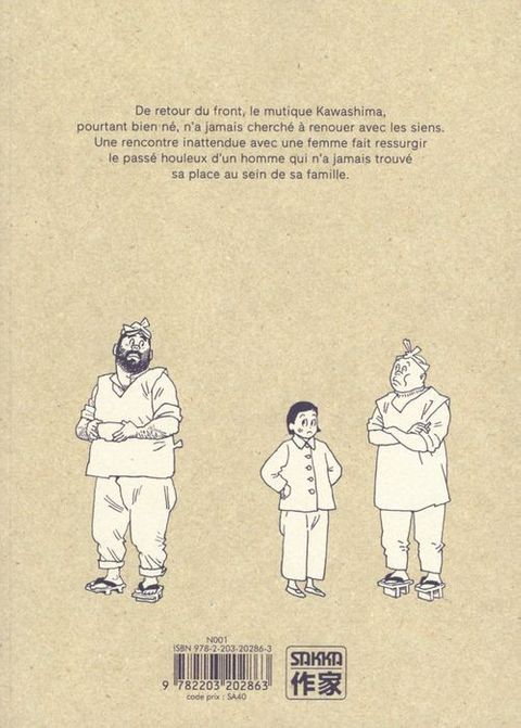 Les Pieds Nickelés chez Tardi. De retour du front, le mutique Kawashima, pourtant bien né, n'a jamais cherché à renouer avec les siens. Une rencontre inattendue avec une femme fait ressurgir le passé houleux d'un homme qui n'a jamais trouvé sa place au sein de sa famille.