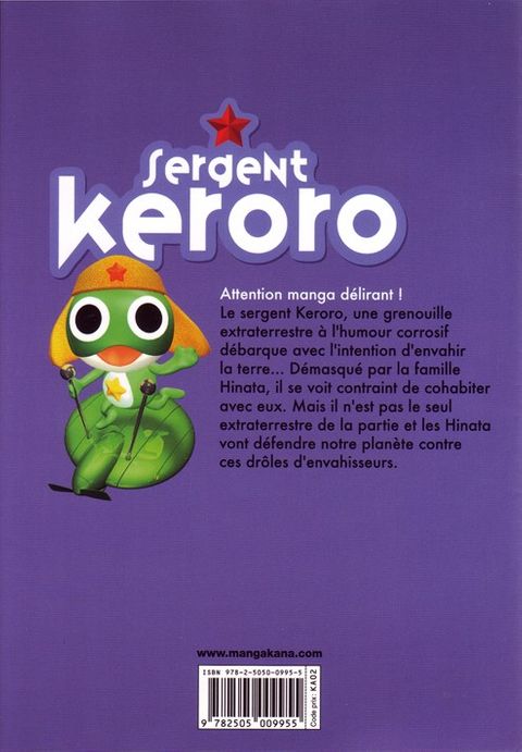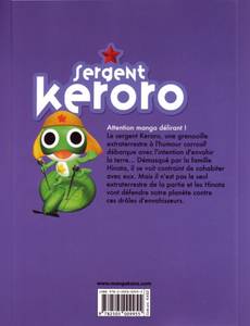 ""Le sergent Keroro, une grenouille verte extraterrestre, constitue l'avant-garde de l'invasion de la Terre par son peuple. Pauvres de nous ?! Pas vraiment car il devra d'abord convaincre la famille Hinata qui l'a recueilli, du sérieux de cette invasion et ce n'est pas gagné !