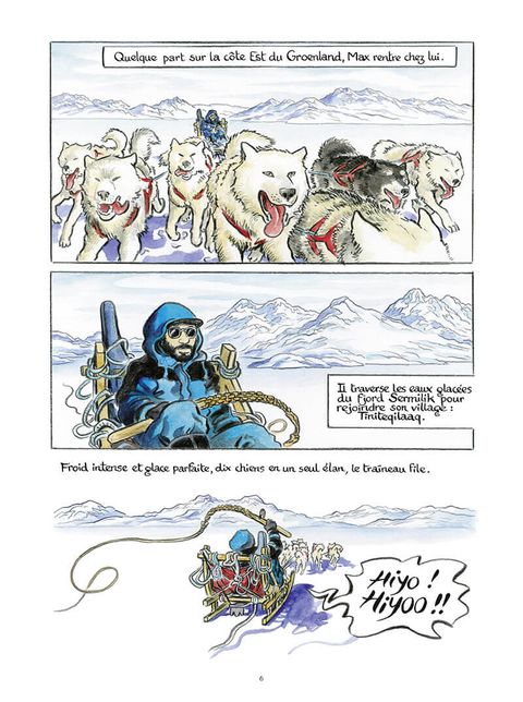 À 18 ans Max a décidé de quitter Marseille pour s'installer sur la côte Est du Groenland. Dans le village isolé de Tiniteqilaaq où il habite depuis trente ans, il a appris des Inuits leur mode de vie particulièrement rude, à l'aune d'une nature aussi magnifique qu'impitoyable. Un parcours quasi-initiatique, fait de moments intimes ou épiques, dont Max a confié le récit à Simon Hureau. L'auteur de L'Oasis nous propose ici la biographie d'un homme ordinaire qui a choisi de vivre son rêve dans l'un des endroits les plus inhospitaliers de la planète...