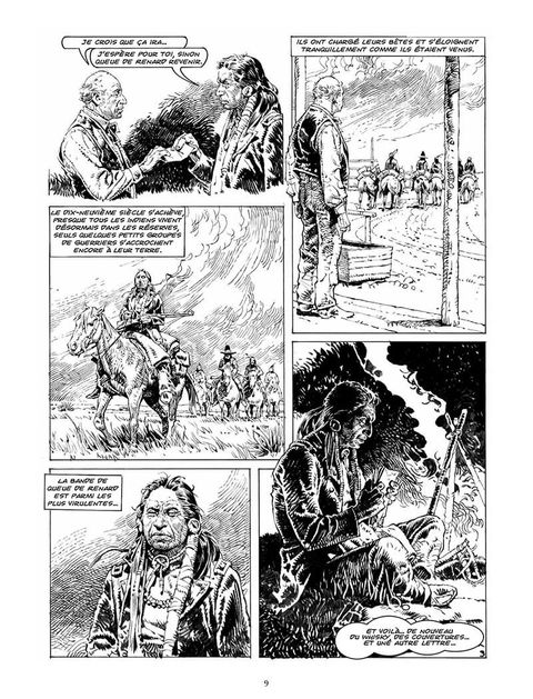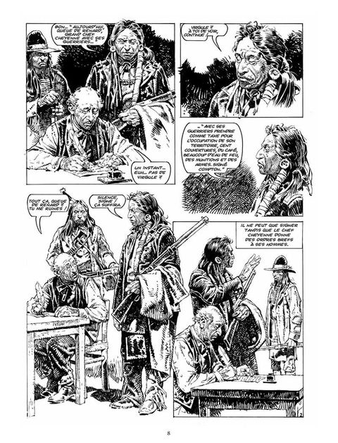 Le dix-neuvième siècle s'achève, deux civilisations s'affrontent dans le sang en Amérique du Nord. Pour les Indiens, un monde s'effondre. Sous le pinceau virtuose de Serpieri, quelques scènes de ce drame reprennent vie, comme nul autre, il a su redonner une épaisseur humaine à la mythologie de l'Ouest. Quatre histoires : - Comment Queue de Renard devint hors-la-loi. Un indien -rusé comme il se doit- se fait écrire noir sur blanc les taxes qu'il a le droit de prélever. Mais comme il ne sait pas lire, la tentation est forte pour le colon écrivain... - Takuat. Tankuat interprète les pétroglyphes. Il sait qu'il est le sauveur de son peuple. Mais arrive-t-il au on moment ? - La tanière du castor. Un trappeur a trouvé une assurance vie pour pour chasser tranquillement le castor sur le territoire Crow. - Bisons. C'est l'hiver, la tribu des Pawnees est en quête de gibier.