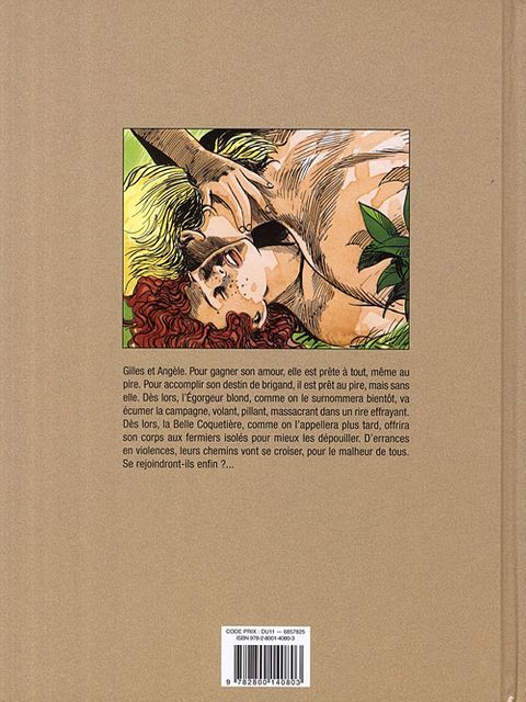 Gilles et Angèle. Pour gagner son amour, elle est prête à tout, même au pire. Pour accomplir son destin de brigand, il est prêt au pire, mais sans elle. Dès lors, l'Égorgeur blond, comme on le surnommera bientôt, va écumer la campagne, volant, pillant, massacrant dans un rire effrayant. Dès lors, la Belle Coquetière, comme on l'appellera plus tard, offrira son corps aux fermiers isolés pour mieux les dépouiller. D'errances en violences, leurs chemins vont se croiser, pour le malheur de tous. Se rejoindront-ils enfin ?...