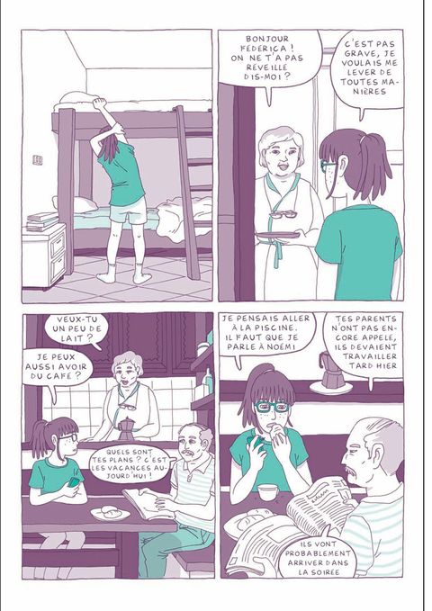 Fédérica, une jeune préado italienne, passe l'été avec ses grands-parents dans la petite station de ski de Sestrières, non loin de Turin. Elle se réveille un matin après une soirée dont elle conserve peu de souvenirs et constate rapidement que son amie Noémie, qui était avec elle en soirée, a disparu. D'abord inquiète puis bientôt franchement paniquée, Fédérica se lance à la recherche de son amie, aidée par un jeune du coin, Giorgio. Au fil de leur enquête, ils rencontrent de nombreux habitants de cette station où tout le monde s'épie et où les ragots vont bon train. Fédérica découvre alors que des histoires sordides se déroulent dans la petite ville à l'abri des regards indiscrets. Intriguant, le récit alterne entre l'enquête menée par Fédérica et des flashs-back de la soirée au cours de laquelle Noémie a disparu... Deuxième roman graphique de Lucia Biagi publié en France après Point de Fuite en 2015, Sestrières est une nouvelle fois un roman graphique consacré à un personnage féminin. Lucia Biagi brosse le portrait très juste d'une jeune italienne fascinée par une amie plus âgée qu'elle, incapable de se séparer de son portable et qui exprime ses sentiments à travers des petits films d'animation qu'elle réalise toute seule. Une préado attachante qui a parfois toutes les peines du monde à faire la distinction entre ses fantasmes et la réalité...