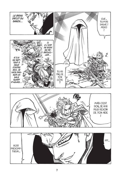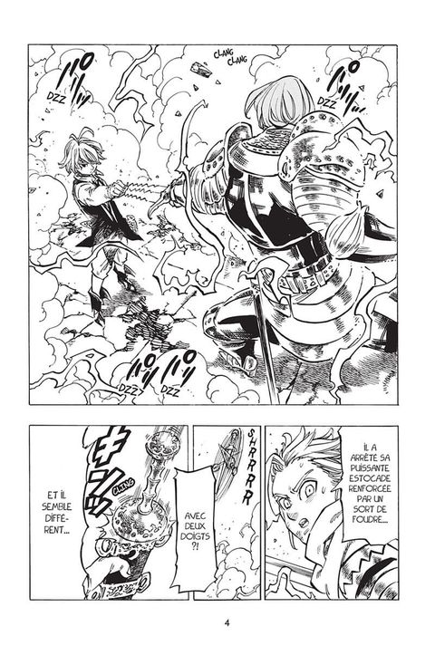 Après un duel éprouvant, King a vaincu Helbram. Au même moment, deux autres combats font rage entre Meliodas et Gilthunder, d'un côté, et Arthur et Hendrickson, de l'autre. Mais le roi de Camelot est en difficulté et Meliodas se retrouve à devoir affronter les deux chevaliers sacrés en même temps ! L'issue du combat semble incertaine lorsque la princesse Margaret arrive tout-à-coup sur le champ de bataille...
