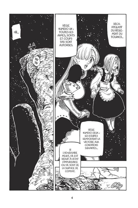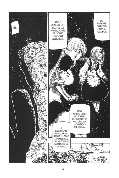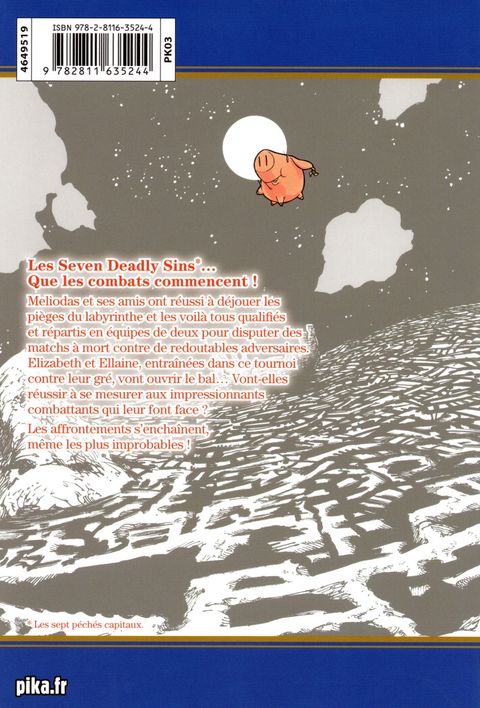 Que les combats commencent ! Meliodas et ses amis ont réussi à déjouer les pièges du labyrinthe et les voilà tous qualifiés et répartis en équipes de deux pour disputer des matchs à mort contre de redoutables adversaires. Elizabeth et Ellaine, entraînées dans ce tournoi contre leur gré, vont ouvrir le bal… Vont-elles réussir à se mesurer aux impressionnants combattants qui leur font face ?