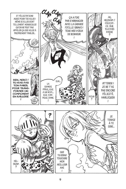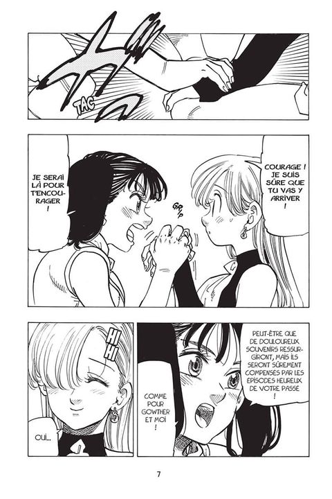Les Seven Deadly Sins sont enfin réunis et se dirigent vers Corand pour briser la distorsion temporelle qui les empêche d'entrer à Camelot. Sur le chemin, Elizabeth prend soin d'Ellaine qui s'affaiblit de jour en jour. Malheureusement, la révélation de Zeldris contrarie la princesse qui ne comprend pas la réaction de Meliodas. Celui-ci va finir par se confier lorsqu'un étrange mal s'empare de la jeune fille ! Quelle est cette terrible malédiction qui pèse sur Meliodas et Elizabeth ?
