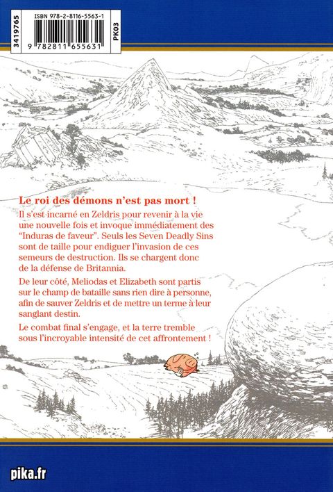 Le roi des démons n'est pas mort !Il s'est incarné en Zeldris pour revenir à la vie une nouvelle fois et invoque immédiatement des "Induras de faveur". Seuls les Seven Deadly Sins sont de taille pour endiguer l'invasion de ces semeurs de destruction. Ils se chargent donc de la défense de Britannia.De leur côté, Meliodas et Elizabeth sont partis sur le champ de bataille sans rien dire à personne, afin de sauver Zeldris et de mettre un terme à leur sanglant destin. Le combat final s'engage, et la terre tremble sous l'incroyable intensité de cet affrontement !