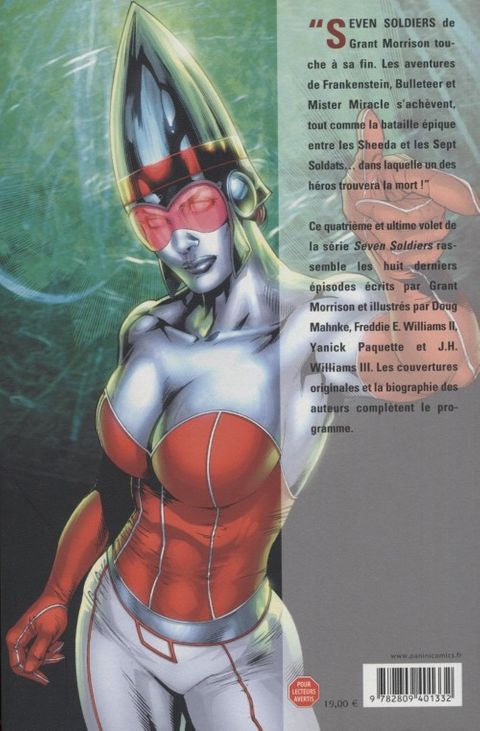 " seven soldiers de grant morrison touche à sa fin. Les aventures de frankenstein, bulleteer et mister miracle s'achèvent, tout comme la bataille épique entre les sheeda et les sept soldats. dans laquelle un des héros trouvera la mort ! " ce quatrième et ultime volet de la série seven soldiers rassemble les huit derniers épisodes écrits par grant morrison et illustrés par doug mahnke, freddie e. williams ii, yanick paquette et j. h. williams iii. les couvertures originales et la biographie des auteurs complètent le programme.