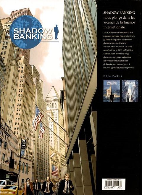 Maureen et Mathieu se rendent en Grèce. En décryptant la clé USB, ils ont pu découvrir l'adresse IP et l'identité du commanditaire des tueurs qui les traquent sans relâche. Il s'agit d'Elias Glykos, affairiste ayant incité de nombreuses banques à faire l'acquisition de produits véreux pour masquer artificiellement la dette grecque. Un individu probablement responsable en grande partie de la faillite globalisée qui s'annonce... et qui n'a évidemment pas envie que cela s'ébruite. Shadow Banking est un thriller nerveux et grand public permettant d'appréhender tout en se divertissant les rouages opaques de la finance internationale. Prenant le parti d'analyser les conséquences de la dette grecque sur l'économie mondiale pour expliquer la crise financière, cette série est plus que jamais d'actualité !