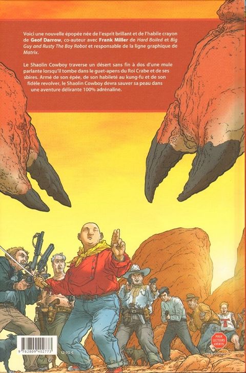 Le shaolin cowboy traverse un désert sans fin à dos d'une mule parlante lorsque'il tombe dans le guet-apens du roi crabe et de ses sbires. Armé de son épée, de son habileté au kung-fu et de son fidèle révolver, le shaolin cowboy devra sauver sa peau dans une aventure délirante 100% adrénaline