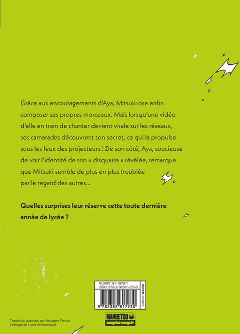 Grâce aux encouragements d'Aya, Mitsuki ose enfin composer ses propres morceaux.Mais lorsqu'une vidéo d'elle en train de chanter devient virale sur les réseaux, ses camarades découvrent son secret, ce qui la propulse sous les feux des projecteurs !De son côté, Aya, soucieuse de voir l'identité de son « disquaire » révélée, remarque que Mitsuki semble de plus en plus troublée par le regard des autres...Quelles surprises leur réserve cette toute dernière année de lycée ?Véritable phénomène sur Twitter, She Wasn't a Guy est la première oeuvre de Sumiko Arai, autrice suivie par un million de followers !« Une réflexion subtile sur l'identité et la sincérité. » Anim'Otaku