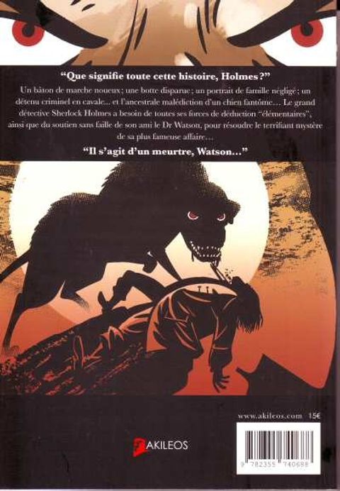 "Que signifie toute cette histoire, Holmes ?" Un bâton de marche noueux ; une botte disparue ; un portrait de famille négligé; un détenu criminel en cavale... Et l'ancestrale malédiction d'un chien fantôme... Le grand détective Sherlock Holmes a besoin de toutes ses forces de déduction "élémentaires", ainsi due du soutien sans faille de son ami le Dr Watson, pour résoudre le terrifiant mystère de sa plus fameuse affaire... "Il s'agit d'un meurtre, Watson..."