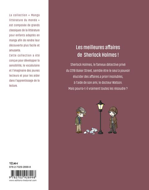 Découvrez le grand classique d'Arthur Conan Doyle en manga ! Les meilleures affaires de Sherlock Holmes ! Sherlock Holmes, le fameux détective privé du 221B Baker Street, semble être le seul à pouvoir élucider des affaires a priori insolubles, à l'aide de son ami, le docteur Watson. Mais pourra-t-il vraiment toutes les résoudre ?
