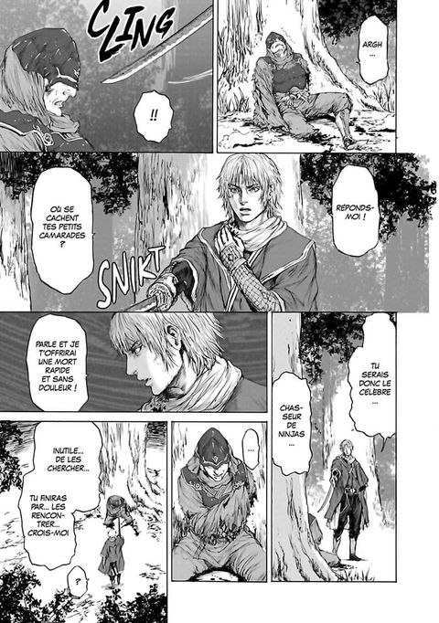Récit de samouraï surhumain et de ninjas mutants, ce manga nous plonge dans des scènes sanglantes de combat sous fond de désir de vengeance. Disponible chez kurokawa dans une éditions de bonne qualité. Dynamique et explosif, j’ai passé un très bon moment avec ce tome 1. L’auteur ne perd donc (...) Voir le commentaire