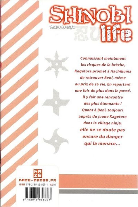 Connaissant maintenant les risques de la brèche, Kagetora promet à Hachikuma de retrouver Beni, même au prix de sa vie. En repartant une fois de plus dans le passé, il y fait une rencontre des plus étonnante ! Quant à Beni, toujours auprès du jeune Kagetora dans le village ninja, elle ne se doute pas encore du danger qui la menace...