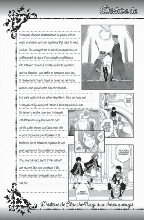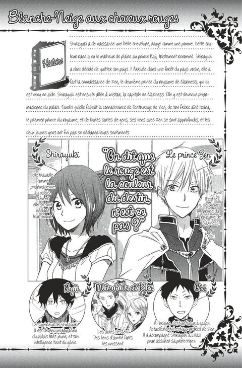 Pour Shirayuki, la vie n'est pas toujours rose, elle serait plutôt rouge pomme. Cette jeune apprentie pharmacienne, originaire du pays de Tanbarun, a l'art d'attirer les regards. En effet, elle est née avec une chevelure rouge ! Pour éviter un mariage avec le prince de son pays, elle a fui dans la forêt du pays voisin où elle y rencontre Zen et ses amis : Kiki et Mitsuhide, les gardes du corps de Zen. Celui-ci se trouve être, en fait, le second prince du royaume de Clariness. Avec ses amis, Shirayuki va essayer de devenir la pharmacienne royale en passant un concours afin de pouvoir être auprès de Zen sans lui attirer les ennuis dû à son statut de roturière. Cependant, cette rencontre n'est pas du goût de tout le monde et certains d'entre eux pensent même à la kidnapper afin d'en faire cadeau aux puissants.