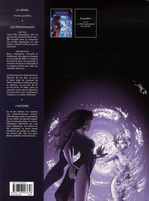 Ludivine travaille dans un restaurant de nouilles japonaises sur une station orbitale. Un soir, le rideau électro-magnétique de sa douche tombe en panne. Elle le traverse et se retrouve accidentellement... dans un autre univers ! Le monde étrange de Nibiru - où toute création artistique est prohibée - vit sous la tyrannie de la Reine Sombre. Sans le savoir, Ludivine s'attire les foudres de la despote...