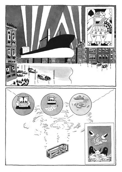 « Vous atteindrez votre destination dans 14h. » annonce la voix laconique du GPS quand le journaliste le programme pour Ronin, où il doit rejoindre M. le Magicien. Alors qu'un déluge allonge son voyage, il prend en stop trois individus perdus et trempés sur le bord de la route. Eux aussi se rendent à Ronin pour la fête organisée pour l'annonce du grand retour du magicien. M. Le magicien... Qui est-il ? Qui est-il vraiment ? Un célèbre illusionniste disparu des écrans depuis plusieurs années ? Un mage aux pouvoirs surnaturels capable de faire s'envoler des navires ? Un homme étrange s'invitant dans vos rêves pour délivrer de mystérieux messages ? Ou un habile charmeur amateur de cartes et de conquêtes féminines ? Et si ce voyage en voiture sous la pluie était la clé de toutes ces énigmes ? Si M. le magicien n'apparaît que par le biais de la voix du héros, il transparaît comme un homme nébuleux aux multiples facettes qui sait pourtant manipuler son public et son image. Dans un récit ponctué de flashbacks à la Citizen Kane, le lecteur pensera souvent pouvoir dresser les contours de cet homme insaisissable. La parole du journaliste semble libérer le dessin de l'auteur qui imagine, lors de scènes grandioses, les tours de magie de M.