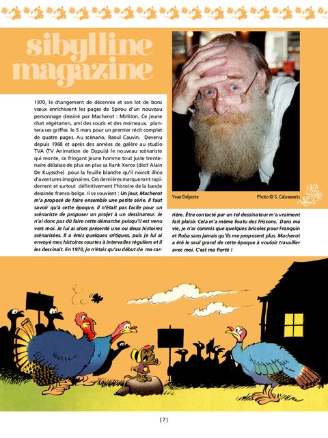 Née dans les pages du périodique Spirou en mars 1965, Sibylline est un délicieux personnage de petite souris évoluant dans un univers champêtre, et vivant des aventures pleines de fantaisie. Elle est environnée d’une ribambelle de seconds rôles pittoresques et attachants, et a pour adversaire le rat noir Anathème. Casterman entreprend de publier l’intégrale des aventures de Sibylline. Cinq volumes organisés de façon chronologique sont prévus, pour un total de plus de 1000 pages. Cette édition définitive fait l’objet d’un travail très soigné de restauration des planches, afin de leur redonner la chaleur des couleurs vintage.