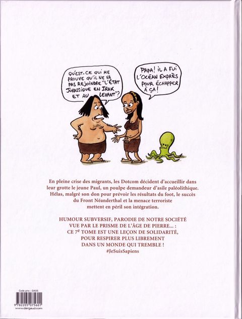 Drame des migrants, victoire du Front Néanderthal, angélisme bobo-sapiens, menace terroriste suivie en direct sur les chaînes d'évolution en continu : ce nouvel album de Silex and the City attaque frontalement tous les thèmes les plus brûlants de notre époque. Pour respirer plus librement, et continuer à clamer haut et fort notre liberté d'hominidés supérieur, découvrez ce tome 7 plein de bruit, de rires, et de fureur. #JeSuisSapiens !