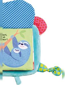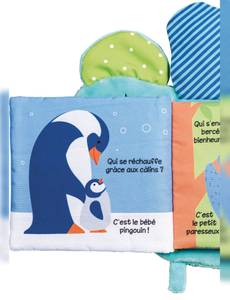 Le 3e et le 4e titres de la collection des livres en tissu « Silhouettes »Un livre tendre en velours et aux couleurs joyeuses pour raconter les tendres câlins des animaux avec leurs petits. Enrichi de différentes textures pour stimuler les petites mains de Bébé !