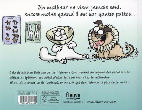 Cela devait bien finir par arriver : le chat de Simon, abonné au régime des excès et des bêtises à répétition, est obligé d'aller faire un tour chez le vétérinaire. Mais du docteur ou de l'animal, on ne sait qui doit redouter le plus cette visite !