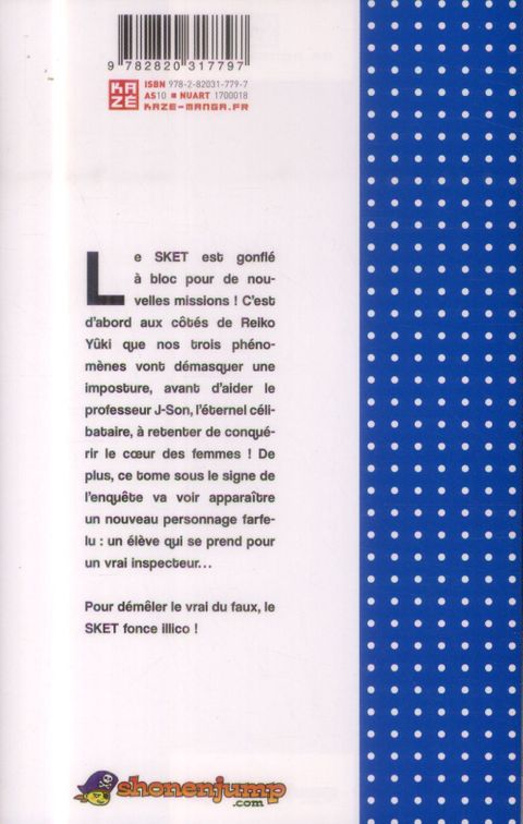 Le SKET est en forme pour de nouvelles missions aux côtés de Reiko Yûki pour démasquer une imposture, mais aussi du professeur malchanceux en amour, le professeur Jay-son, pour retenter de conquérir le coeur des femmes ! Ce tome sous le signe de l'enquête va voir apparaître un nouveau personnage farfelu : un élève qui se prend pour un vrai inspecteur.