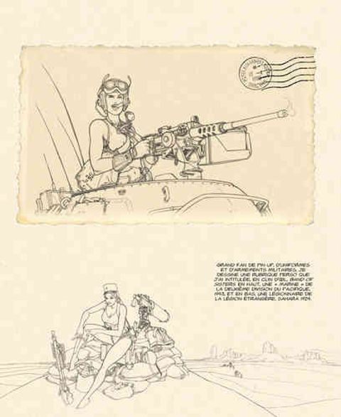 Nicolas Malfin est le dessinateur de la série de science-fiction Golden City (9 tomes parus à ce jour) et de Cézembre (récit historique sur la 2nde guerre mondiale). Grand fan d'uniformes, de technologie militaire et de... pin-up, Nicolas Malfin vous dévoile dans ce sketchbook sa collection privée de "Band of sisters", illustrations de guerrières ou de pin-up militaires. Particulièrement reconnu pour ses mises en scène et ses décors documentés et détaillés, Nicolas Malfin livre, dans ce recueil, son travail de recherche, réalisé exclusivement au crayon à papier : modèles vivants finement croqués, travaux de jeux de rôles lui permettant de travailler ses designs, dessins inédits de Cézembre... La simplicité de son trait, au style ligne claire, confère à son dessin élégance et fluidité.