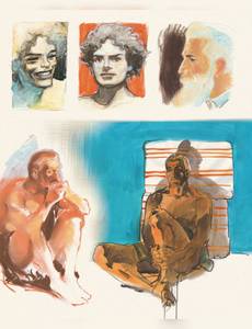 Dessinateur exceptionnellement doué, Christian Rossi a travaillé avec les plus grands, de Jean-Michel Charlier à Serge Le Tendre, en passant par Jijé et Jean Giraud/Moëbius (W.E.S.T., Jim Cutlass, Deadline, Tiresias, La Gloire d’Hera, etc.) Ce sketchbook s’ouvre sur une invitation au voyage et met en lumière la dimension spirituelle que l’on retrouve dans les récits de Rossi, son attrait pour l’Autre et l’Ailleurs. Ses croquis de modèles vivants à l’encre, plume et pinceau, d’une rare expressivité, révèlent la force et le dynamisme de son trait intense, complet et généreux. Visages marqués par la violence, regards qui confinent à la folie, mines boudeuses, corps languissants, inquiétude, lassitude, sourires éclairés par la douceur de son crayon, faciès attendrissants : les expressions des personnages de Rossi, humains ou animaux, nous touchent au plus profond de nous-même. Christian Rossi est un auteur exigeant en recherche permanente. Jamais satisfait, il ne reproduit pas la même technique d’un album à l’autre et son style explore chaque fois des horizons très différents. Ses ambiances africaines, cubaines, antiques et western, ses univers oniriques et fantastiques sont sublimés par la qualité de son encrage et de ses couleurs lumineuses. Digne héritier de Jijé et Milton Caniff, Christian Rossi est un maître du découpage, de l’encrage et de la narration. L'équilibre entre le noir et le blanc est époustouflant dans son travail. Parallèlement, sa maîtrise de la couleur directe est bluffante et met parfois le lecteur en apnée, totalement immergé dans des atmosphères grandioses réalisées aux pastels, à la gouache, à l’encre ou à l’aquarelle. Les différentes facettes de son dessin sont autant de petits carrés scintillants d’une seule et même mosaïque qui constitue son oeuvre. Une oeuvre intense qui fait de Christian Rossi incontestablement un des plus grands de la bande dessinée contemporaine! Ne ratez pas ce sketchbook, témoignage des expérimentations de cet artiste.