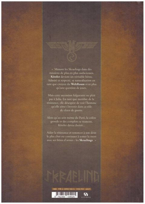 Köstler poursuit sa descente aux enfers. À mesure qu'il est assailli par des souvenirs traumatisants, son conditionnement par la WeltRaum s'émaille. À qui faire confiance ? Doit-il rejoindre la résistance comme le voudrait Julia, sa bien-aimée, ou rester chez les Skraelings et être enfin reconnu à sa juste valeur en se faisant naturaliser par le grand dictateur U-mensch ? Köstler devra choisir entre l'honneur et l'amour.