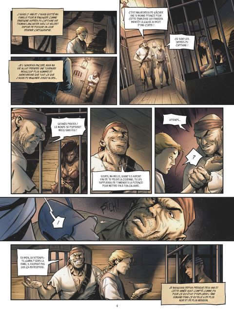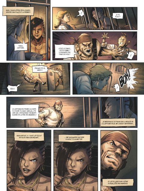 Excellente BD de pirates ! L'esprit de la piraterie est bien représenté, les combats maritimes sont visuels et bien mis en scènes. Le dessin est plutôt lisse mais avec une belle colorisation. Le scénario est complet, et le point de vue du narrateur, avec sa position particulière, apporte une vision (...) Voir le commentaire
