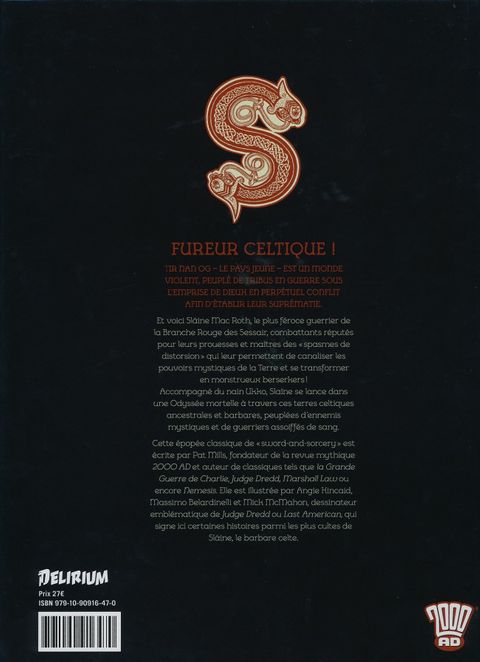 Tir Nan Og - la Jeune Terre - Est Unmonde Violent, Peuplé de Tribus en Guerre qui Vénèrent des Dieuxdifférents, à la Fois Bienveillants et Mauvais. dans ce Premierrecueil des Aventures de Sláine, nous Découvrons la Tribu Dessessair, Composée de Guerriers Téméraires Réputés pour Leursprouesses au Combat. et le Meilleur d'entre Eux, le Jeune Sláine Macroth. Sláine Est Notamment le Maître des "spasmes Dedistorsion", qui Lui Permet de Canaliser les Pouvoirs Mystiquesissus de la Terre à Travers son Propre Corps et se Transformer Enmonstrueux Berserker!cette Epopéeclassique de "sword-and-sorcery" Est Ecrite par Pat Mills,fondateur de la Revue Mythique 2000 Ad et Auteur de Classiques Telsque la Grande Guerre de Charlie, Judge Dredd, Marshall Law ou Encorenemesis. elle Est Notamment Illustrée par Angie Kincaid, Massimobelardinelli Ainsi que Mick Mcmahon, Dessinateur Emblématique Dejudge Dredd ou Last American qui Signe Ici Certaines Histoires Parmiles Plus Cultes de Sláine, le Barbare Celte.