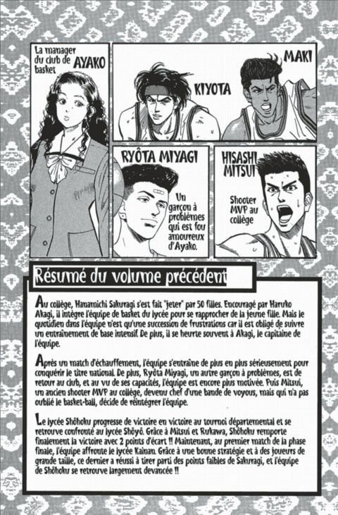 Alors que Kainan commence à imposer son jeu à l’équipe de Shohoku, Akagi se blesse. Les joueurs sur le terrain réussiront ils à résister ?? —————— Toujours aussi intense et réussi ; le suspense est à son comble pour cette première mi-temps