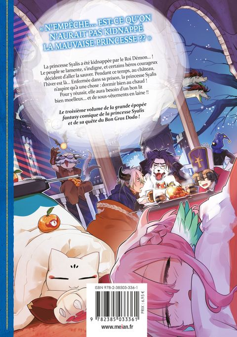 " N'empêche... Est-ce qu'on n'aurait pas kidnappé la mauvaise princesse ?? "La princesse Syalis a été kidnappée par le Roi Démon... ! Le peuple se lamente, s'indigne, et certains héros courageux décident d'aller la sauver.Pendant ce temps, au château, l'hiver est là... Enfermée dans sa prison, la princesse Syalis n'aspire qu'à une chose : dormir bien au chaud !Pour y réussir, elle aura besoin d'un bon lit bien moelleux... et de sous-vêtements en laine !!Le troisième volume de la grande épopée fantasy comique de la princesse Syalis et de sa quête du Bon Gros Dodo !