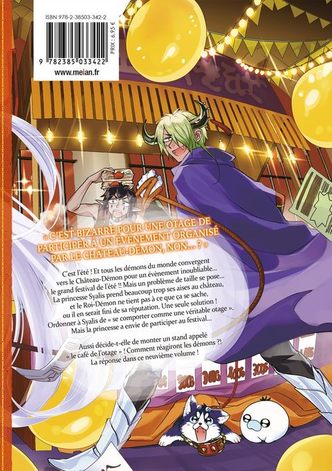 C'est l'été ! Et tous les démons du monde convergent vers le Château-Démon pour un évènement inoubliable... Le grand festival de l'été !! Mais un problème de taille se pose... La princesse Syalis prend beaucoup trop ses aises au château, et le Roi-Démon ne tient pas à ce que ça se sache, ou il en serait fini de sa réputation. Une seule solution ! Ordonner à Syalis de " se comporter comme une véritable otage ". Mais la princesse a envie de participer au festival...Aussi décide-t-elle de monter un stand appelé " le café de l'otage " ! Comment réagiront les démons ?! La réponse dans ce neuvième volume !