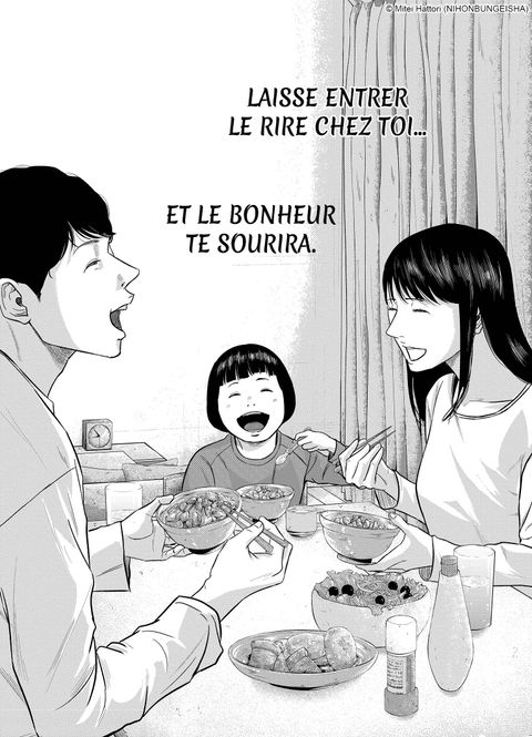 Pour retrouver sa femme Megumi, Yûshi Kamome a infiltré l'Église du Sourire Éternel. C'est après avoir assisté à la cérémonie de l'allégresse qu'il découvre, horrifié, les sombres secrets dissimulés derrière les sourires de cette secte. Mais que cache le passé de cet homme, dont la famille s'est retrouvée brisée du jour au lendemain ? Alors qu'aucun retour en arrière ne semble possible, Yûshi se voit proposer une alliance inattendue...Publié chez Nihon Bungeisha, Smile! est une oeuvre qui plonge le lecteur dans les ténèbres d'un culte inquiétant. Hattori Mitei vous entraîne dans un thriller des plus haletants et un drame psychologique inoubliable.