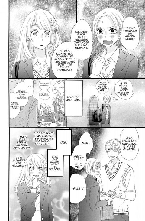 Depuis toute petite, Nonaka rêve d'avoir un amoureux. Arrivée au lycée, elle n'a toujours pas de petit copain. Elle décide d'enchaîner les soirées, commence un petit boulot, tente de rencontrer des garçons mais rien n'y fait. En réalité, elle a fait la connaissance de quelqu'un : il s'appelle Naoya et il devient son confident. Mais n'y-a-t 'il vraiment que de l'amitié entre eux ? Il semblerait que Nonaka ne sache pas vraiment ce que c'est qu'être amoureuse. Elle va devoir partir à la conquête de ce sentiment avant de pouvoir franchir le pas.