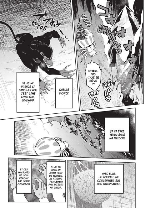 Alors que je pensais maîtriser la situation face à l'armée de macaques, des renforts sont arrivés et leurs cousins, des singes géants, se sont invités à la fête. Et ceux-là, ils ne rigolent pas ! Ils me foncent dessus tels des kamikazes avec leurs crocs acérés et je me retrouve acculée ! Au secours ! Faites que je monte d'un niveau !