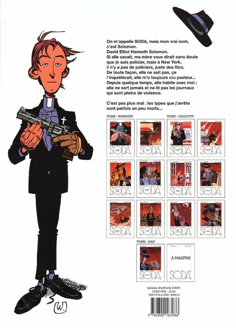 Ce premier tome pose les bases d’une série prometteuse. On y découvre un flic new-yorkais atypique, qui joue les pasteurs pour protéger sa mère. Attachant, un brin maladroit mais courageux, Soda évolue dans un univers sombre, réaliste et parfois grinçant, tout en gardant une pointe d’humour. L’intrigue, intense et parfois (...) Voir le commentaire