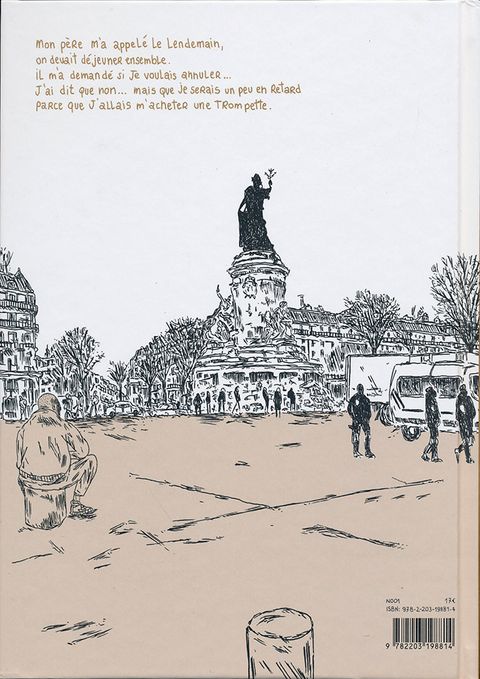 Après les événements, l’instrument devient son unique moyen d’expression. Il souffle sans vraiment jouer, il ne fait pas de la musique mais plutôt des sons qui agacent, questionnent son entourage, à commencer par Kader, son ami de toujours… Dans la veine autofictionnelle de certains de ses précédents livres (TMLP, La Petite couronne, En roue libre), Gilles Rochier témoigne d’un abattement, d’une sidération que nous avons tous en partage : que dire, que faire, et comment, après un événement aussi saisissant qu’un attentat ? La réponse de ce livre, d’une radicalité en apparence absurde, est donnée par un auteur à part de la bande dessinée contemporaine.