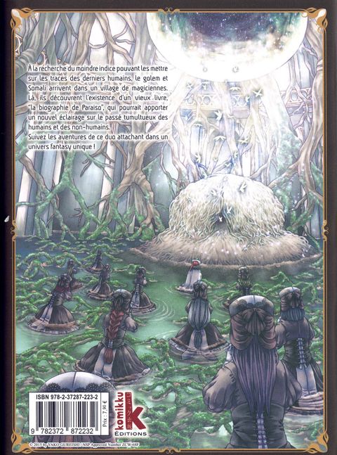 Depuis que le monde est dominé par les créatures non-humaines, les hommes en sont réduits à mener une existence clandestine pour échapper à la persécution sans répit des nouveaux maîtres. Un jour, un golem, gardien des forêts, recueille une fillette appartenant à cette race humaine en voie d'extinction et décide d'entreprendre avec elle un périlleux voyage à travers les contrées. Ainsi commencent les aventures de cet étrange duo dépareillé, mais uni par un attachement quasi filial. À la recherche du moindre indice pouvant les mettre sur les traces des derniers humains, le golem et Somali arrivent dans un village de magiciennes. Là, ils découvrent l'existence d'un vieux livre, "la biographie de Paraiso", qui pourrait apporter un nouvel éclairage sur le passé tumultueux des humains et des non-humains. Suivez les aventures de ce duo attachant dans un univers fantasy unique !