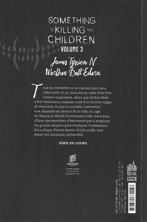 3eme tome très intense ; on monte vraiment d’un cran dans la menace des monstres et l’arrivée de la Loge du Massacre en renfort risque de compliquer encore la situation. J’avais beaucoup aimé les 2 premiers tomes mais celui là est vraiment un cran au-dessus à tous les niveaux ! L’écriture de (...) Voir le commentaire
