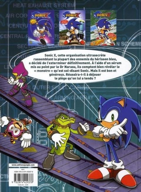 On ne présente plus Sonic, le premier personnage mi-homme mi-hérisson 100 % binaire qui a fait le succès de la maison SEGA depuis 1991 : c'est un jeu de plateforme dans lequel Sonic se met en boule afin de détruire des robots et libérer ses amis animaux ainsi que l'île « South Island » des mains du Dr Eggman. Depuis son apparition, il n'a pas pris une ride et a conservé tout son dynamisme et son capital sympathie auprès des jeunes. Lancé par le jeu vidéo il acquiert ses lettres de noblesse dans le monde du cartoon avec une série TV intitulée Sonic X. Fort de ce succès, c'est naturellement que la bande dessinée lui a ouvert ses portes pour créer un nouveau lien avec son jeune public.
